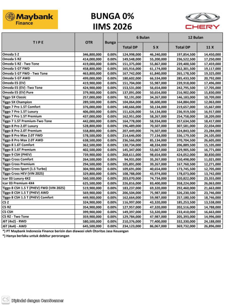 π Harga & promo terbaik untuk mobil Chery favorit Anda.